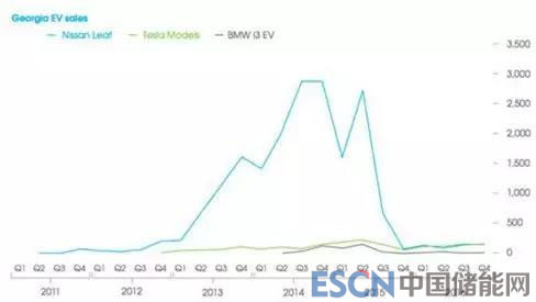 在實施稅收減免政策期間佐治亞州的電動車市場的狀況體現(xiàn)的相對明顯。佐治亞州的電動車銷售取得了巨大成功,其自稱是繼加利福尼亞州之后的美國第二大電動車銷售市場。2014年,該州的電動車銷量占美國所有電動車銷量的17%。驅(qū)動該數(shù)字的因素不僅僅是消費者強烈的環(huán)保意識,也是該州為零排放汽車提供的5000美元稅收減免,此外還有7500美元的美國聯(lián)邦稅收減免。從銷量下降的數(shù)量上看,日產(chǎn)聆風受到的影響最大。獎勵也適用于租賃,這使日產(chǎn)每出租一輛聆風電動車每月就能獲得132美元的收入。當時,日產(chǎn)在佐治亞州交付的聆風車型中,有超過80%用于租賃。
