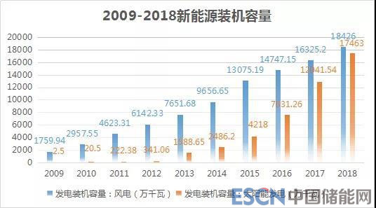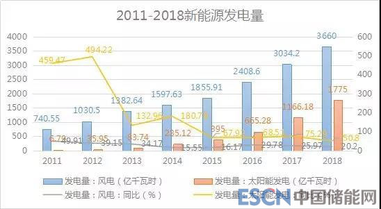 通過(guò)新能源的發(fā)電量、裝機(jī)容量和投資情況圖,可以對(duì)近些年我國(guó)的風(fēng)電和光伏有一個(gè)大致的了解,我國(guó)的風(fēng)電和光伏近些年的發(fā)展均保持一個(gè)較快的速度,風(fēng)電每年的增長(zhǎng)均保持在20%以上,光伏在2018年的增長(zhǎng)也高達(dá)50.8%。但自2015年以來(lái)風(fēng)電的投資有所下降,但光伏還是保持著不斷增加投資的趨勢(shì)。