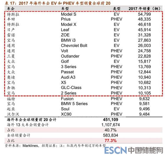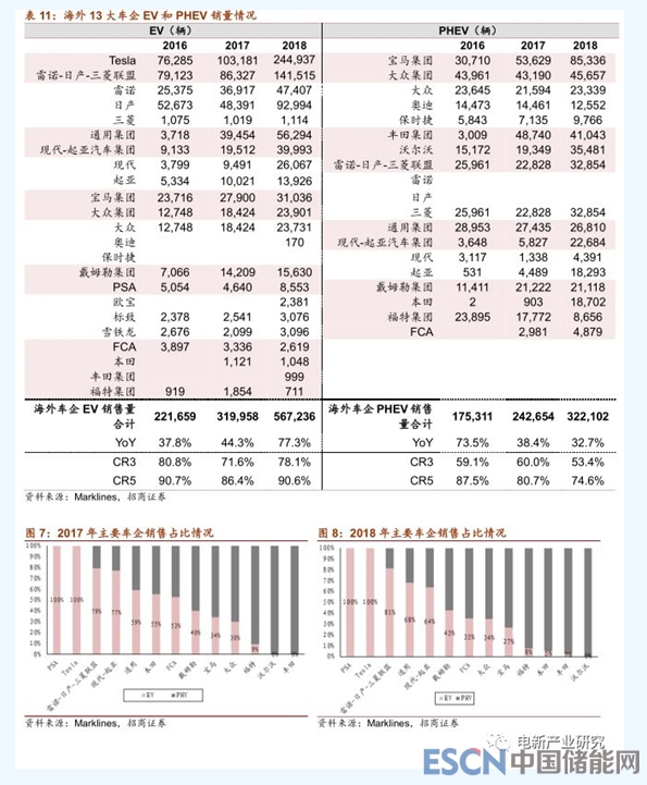 海外主流車企電動(dòng)車銷量維持高增長,整體格局比較穩(wěn)固。2018年,海外13大車企EV+PHEV銷量達(dá)89.3萬輛,同比增長58.9%,其中純電動(dòng)車銷售約54.9萬輛,同比增長達(dá)到84.4%;插電混動(dòng)銷售量達(dá)到34.3萬輛,增長達(dá)30%。