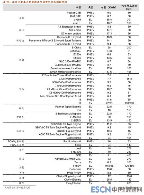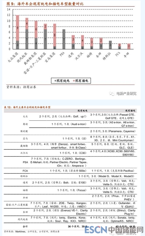 傳統(tǒng)車企的新車型將在2020-2021年密集上市。根據(jù)各車企未來新能源汽車戰(zhàn)略規(guī)劃,海外13大車企集團(tuán)在2018-2020/2021年期間,將推出的新能源車型數(shù)量將大于82款,年均21款以上。