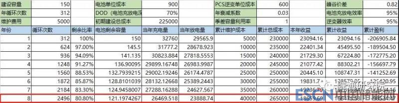 當年收益=峰價×當年放電量-谷價×當年充電量