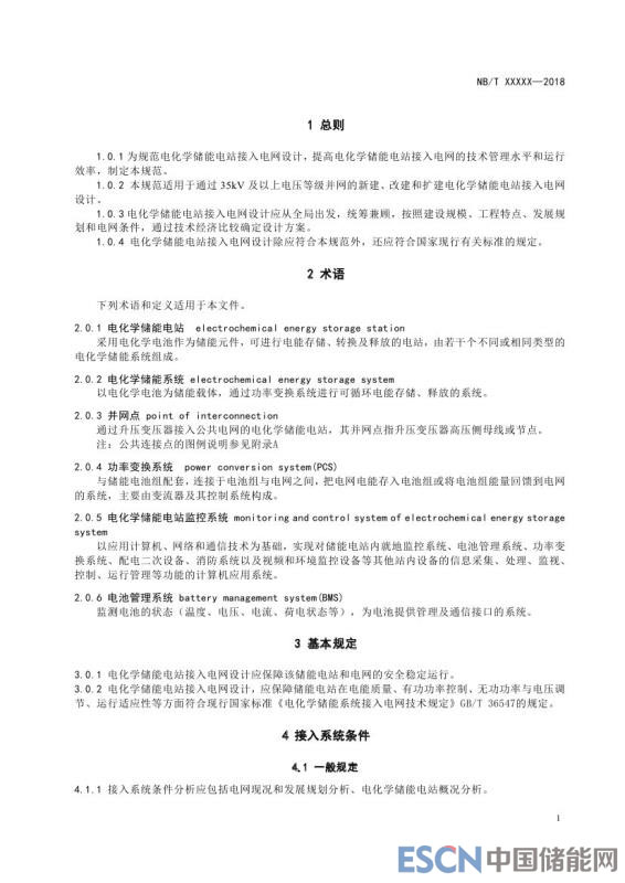 中國(guó)儲(chǔ)能網(wǎng)訊:近日,能源行業(yè)標(biāo)準(zhǔn) 《電化學(xué)儲(chǔ)能電站接入電網(wǎng)設(shè)計(jì)規(guī)范》征求意見(jiàn)稿發(fā)布。為規(guī)范電化學(xué)儲(chǔ)能電站接入電網(wǎng)設(shè)計(jì),提高電化學(xué)儲(chǔ)能電站接入電網(wǎng)的技術(shù)管理水平和運(yùn)行效率,制定本規(guī)范。本規(guī)范適用于通過(guò)35kV及以上電壓等級(jí)并網(wǎng)的新建、改建和擴(kuò)建電化學(xué)儲(chǔ)能電站接入電網(wǎng)設(shè)計(jì)。電化學(xué)儲(chǔ)能電站接入電網(wǎng)設(shè)計(jì)應(yīng)從全局出發(fā),統(tǒng)籌兼顧,按照建設(shè)規(guī)模、工程特點(diǎn)、發(fā)展規(guī)劃和電網(wǎng)條件,通過(guò)技術(shù)經(jīng)濟(jì)比較確定設(shè)計(jì)方案。電化學(xué)儲(chǔ)能電站接入電網(wǎng)設(shè)計(jì)除應(yīng)符合本規(guī)范外,還應(yīng)符合國(guó)家現(xiàn)行有關(guān)標(biāo)準(zhǔn)的規(guī)定。
