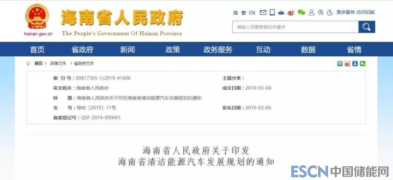 中國儲能網(wǎng)訊:3月6日,海南省人民政府正式印發(fā)海南省清潔能源汽車發(fā)展規(guī)劃。