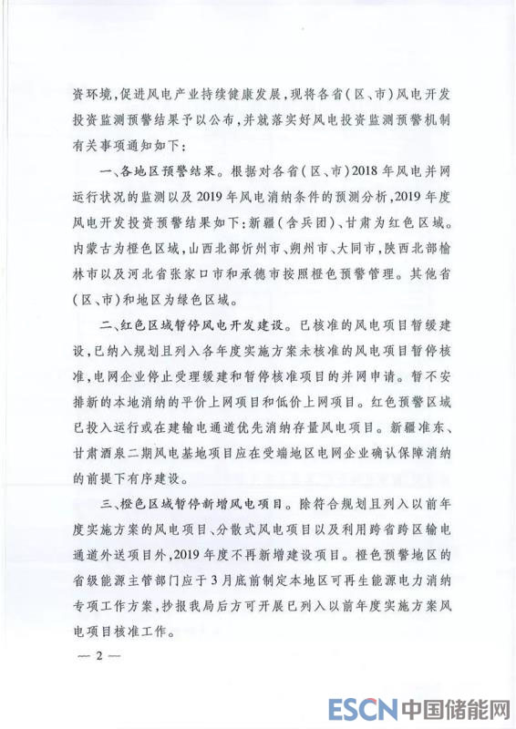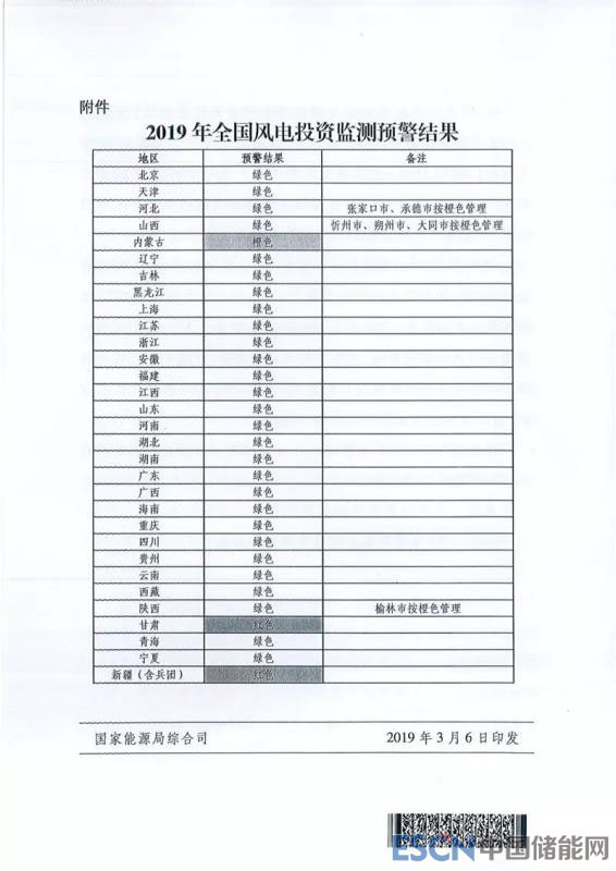 關(guān)于發(fā)布2019年度風電投資監(jiān)測預警結(jié)果的通知