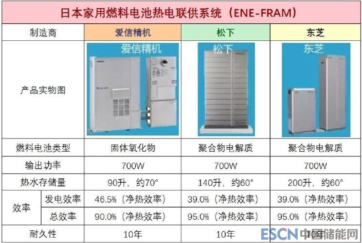 『日本Ene-Farm主要產(chǎn)品及技術(shù)指標(biāo) 圖片源自網(wǎng)絡(luò)』