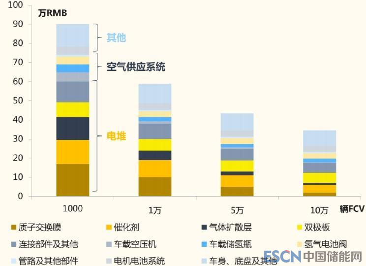 『燃料電池車成本構(gòu)成及與量產(chǎn)規(guī)模的關(guān)系 圖片源自證券研報』