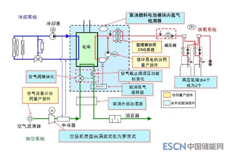 『豐田Mirai燃料電池系統(tǒng)簡化情況』