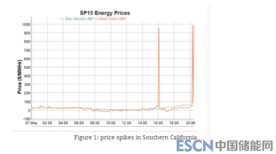 圖1 加利福尼亞州南部地區(qū)儲(chǔ)能系統(tǒng)的價(jià)格上漲