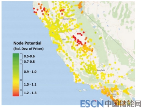 圖2加利福尼亞州節(jié)點(diǎn)系統(tǒng)的“熱圖”