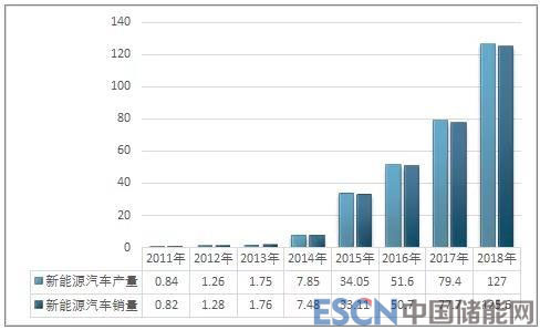 2011-2018年我國新能源汽車產(chǎn)銷量走勢圖