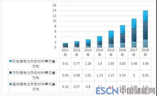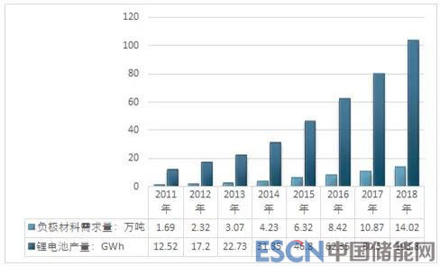 2011-2018年中國負(fù)極材料行業(yè)需求市場