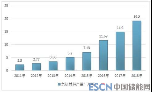 2011-2018年中國負(fù)極材料行業(yè)供給情況