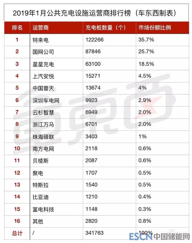 ▲2019年1月公共充電設(shè)施運(yùn)營商排行榜