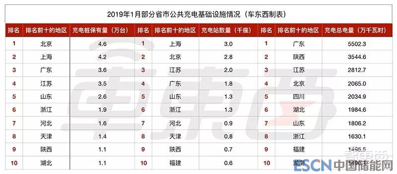 ▲2019年1月部分省市充電樁分布情況