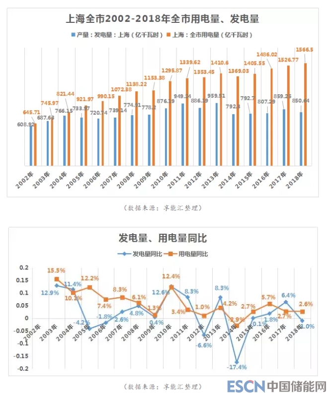 2018年,上海市發(fā)電量850.64億千瓦時(shí)(6000千瓦及以上電廠),比上年下降1.46%,外省市凈調(diào)入電量710.07億千瓦時(shí),增長(zhǎng)7.38%,全社會(huì)用電量1566.66億千瓦時(shí),增長(zhǎng)2.61%。