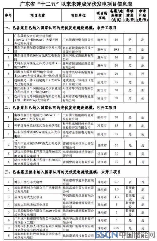 今日,廣東省發(fā)改委下發(fā)《廣東省能源局關(guān)于“十二五”以來未建成風(fēng)電、光伏發(fā)電項(xiàng)目信息的公示》,對(duì)已核準(zhǔn)在兩年內(nèi)未開工建設(shè)且未申請(qǐng)辦理延期的項(xiàng)目將按規(guī)定作廢。