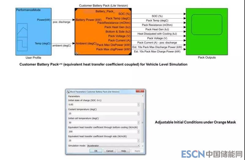 上:客戶電池包模型。下:模型參數(shù)和初始條件的設(shè)置界面。