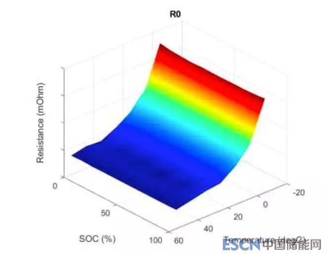 通過參數(shù)估計建立的查找表,其中內(nèi)阻以充電狀態(tài)和溫度的函數(shù)形式來表示。