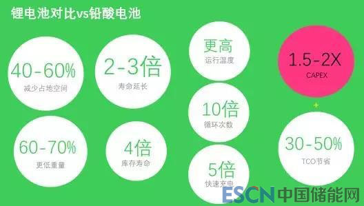 在日本、新加坡、香港等寸土寸金的地區(qū),用戶對于電池的占地空間和重量更為關(guān)注,由于鋰電池的能量密度是鉛酸電池數(shù)倍,其占地空間比鉛酸電池減少了60%以上,省出的寶貴機房空間可以擺放服務(wù)器機柜來出租盈利。同時鋰電池的重量比鉛酸電池輕70%以上,因此可以大大減輕對于樓板承重的壓力,對于由寫字樓改造而成的數(shù)據(jù)機房而言,承重改造費用得以大幅縮減。