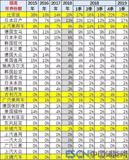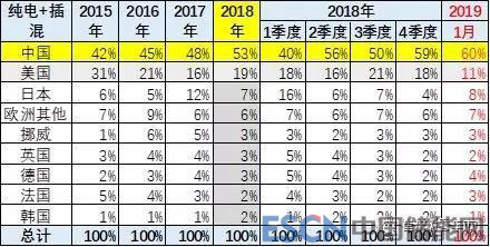 1、中國(guó)19年插混的綜合份額41%
