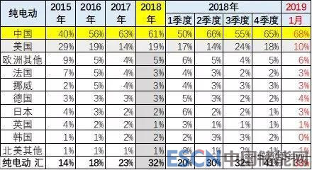 1、中國(guó)19年1月純電動(dòng)的份額68%