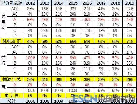 2019年世界新能源車(chē)結(jié)構(gòu)是A級(jí)最高。