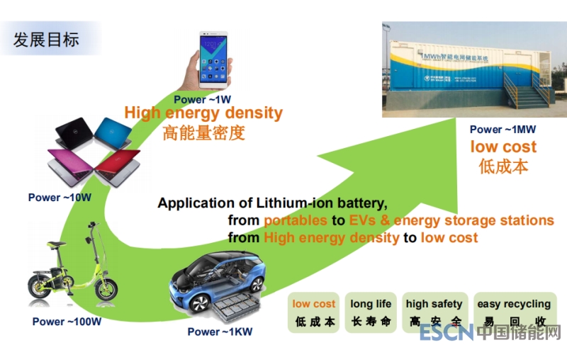 因此我們說(shuō)儲(chǔ)能電池的發(fā)展,已經(jīng)從當(dāng)初對(duì)消費(fèi)類電池的高能量密度的首要要求,逐步轉(zhuǎn)變?yōu)閷?duì)低成本的核心要求。電池在手機(jī)中的使用是剛需,手機(jī)離不開電池,因此電池便宜也好,貴也好,必須要用電池。但是,儲(chǔ)能電池如果太貴的話電力系統(tǒng)可以不用,甚至可以用非儲(chǔ)能的手段解決一些儲(chǔ)能面臨的問(wèn)題。所以“低成本”成為我們儲(chǔ)能電池發(fā)展的首要目標(biāo)。