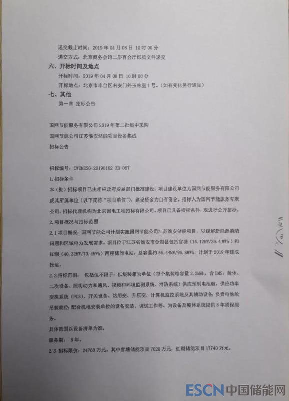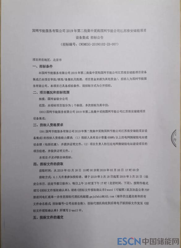中國儲能網(wǎng)訊:3月18日,國網(wǎng)節(jié)能公司同時發(fā)布江蘇淮安官塘、紅湖兩個儲能電站的儲能設(shè)備集成、施工總承包和儲能設(shè)備監(jiān)造的招標(biāo)公告。