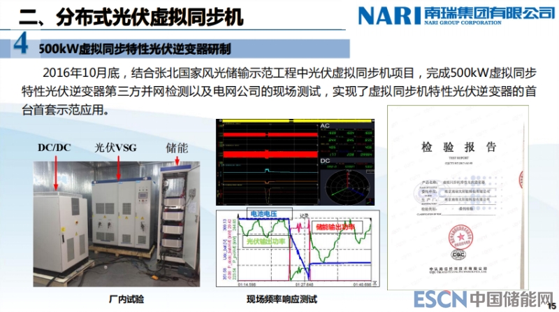 這是現(xiàn)場(chǎng)的應(yīng)用圖,這個(gè)是張北國(guó)家風(fēng)光儲(chǔ)光伏虛擬同步機(jī),實(shí)現(xiàn)了500千瓦的虛擬同步機(jī)光伏逆變器的第三方檢測(cè)以及現(xiàn)場(chǎng)測(cè)試,實(shí)現(xiàn)了它的首臺(tái)首套示范應(yīng)用。