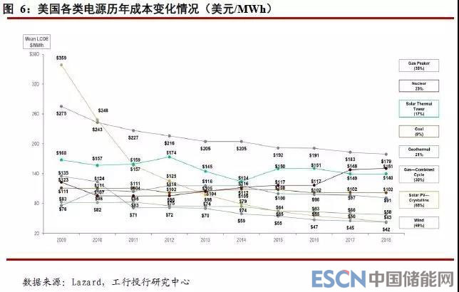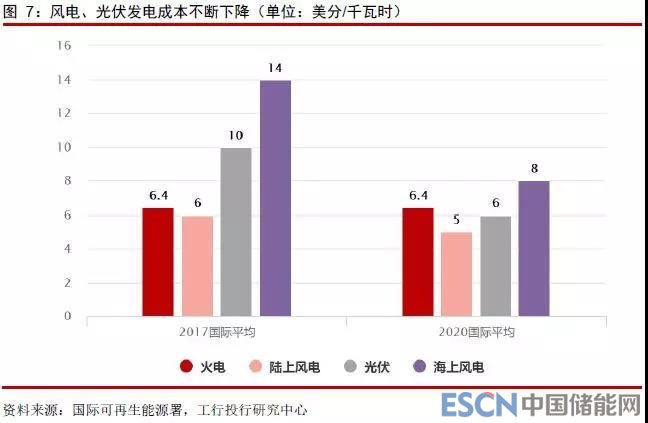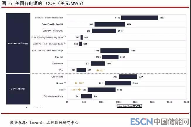 4.1 美國(guó)的風(fēng)、光成本已經(jīng)等同或低于火電
