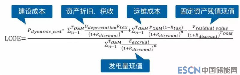 美國(guó)的風(fēng)電和光伏成本已經(jīng)低于火電。美國(guó)咨詢公司Lazard每年評(píng)估美國(guó)各類能源發(fā)電的全生命周期平準(zhǔn)化成本(LCOE),2018年11月公布了第12個(gè)LCOE版本。平準(zhǔn)化度電成本(Levelized Cost of Energy),就是對(duì)項(xiàng)目生命周期內(nèi)的成本和發(fā)電量進(jìn)行平準(zhǔn)化后計(jì)算得到的發(fā)電成本,即生命周期內(nèi)的成本現(xiàn)值/生命周期內(nèi)發(fā)電量現(xiàn)值。根據(jù)這個(gè)定義,計(jì)算LCOE需要的輸入條件有建設(shè)期投資、運(yùn)營(yíng)期成本、運(yùn)營(yíng)期發(fā)電量與給定的折現(xiàn)率等。其基本公式如下: