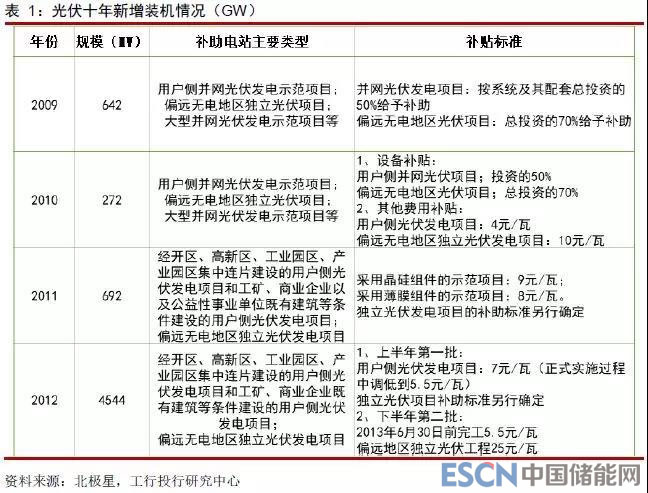 太陽(yáng)能光電建筑示范:2009年,財(cái)政部印發(fā)《太陽(yáng)能光電建筑應(yīng)用財(cái)政補(bǔ)助資金管理暫行辦法》的通知,補(bǔ)助資金使用范圍主要面向城市光電建筑一體化應(yīng)用、農(nóng)村及偏遠(yuǎn)地區(qū)建筑光電利用等。2009年補(bǔ)貼標(biāo)準(zhǔn)為建材型、構(gòu)件型項(xiàng)目不超過20元/瓦,與屋頂、墻面結(jié)合安裝型項(xiàng)目不超過15元/瓦。2010年分別降至17元/瓦、13元/瓦;2012年為降至9元/瓦、7.5元/瓦。