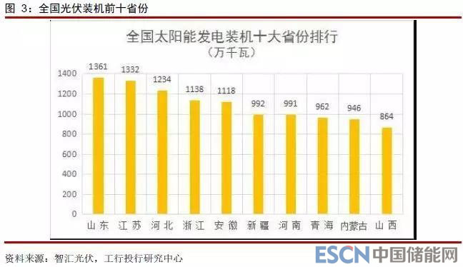 全國(guó)十大太陽(yáng)能發(fā)電裝機(jī)省份分別是:山東1361 萬(wàn)千瓦、江蘇1332 萬(wàn)千瓦、河北1234 萬(wàn)千瓦、浙江1138 萬(wàn)千瓦、安徽1118 萬(wàn)千瓦、新疆992 萬(wàn)千瓦、河南991 萬(wàn)千瓦、青海962 萬(wàn)千瓦、內(nèi)蒙古946萬(wàn)千瓦、山西864 萬(wàn)千瓦。
