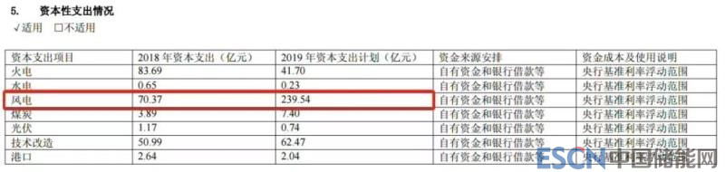 計劃投入的資金著實嚇人,2019年要投資239.54億元做風(fēng)電,而2018年公司風(fēng)電資本支出僅僅為70.37億元,同比增長2.4倍。