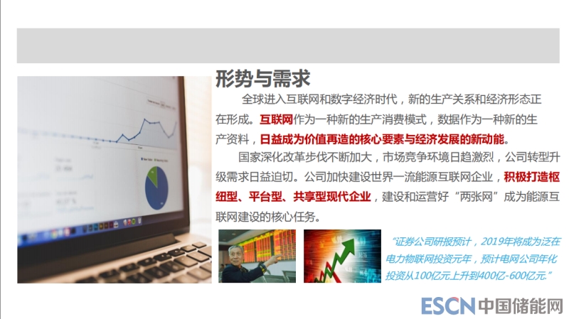 我們國網(wǎng)的寇董事長在2019年國網(wǎng)公司工作會議上,包括今年3月8日建設(shè)電力物聯(lián)網(wǎng)的工作推進(jìn)電話會議上提出要將國網(wǎng)打造成一個三型兩網(wǎng)企業(yè),兩網(wǎng)就是堅(jiān)強(qiáng)智能電網(wǎng)+泛在電力物聯(lián)網(wǎng),把泛在電力物聯(lián)網(wǎng)提到跟智能電網(wǎng)一樣的高度,相當(dāng)于把泛在電力物聯(lián)網(wǎng)引領(lǐng)國網(wǎng)創(chuàng)新發(fā)展,一個首要性開創(chuàng)性的工作來抓,高度非常高。