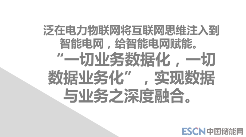 泛在電力物聯(lián)網(wǎng)是什么,要實(shí)現(xiàn)什么目的?最終目的就是所有電網(wǎng)相關(guān)的人、事、設(shè)備全部連接起來,就是實(shí)現(xiàn)三個在線,設(shè)備要隨時在線,用戶隨時在線,服務(wù)在線,要保證三個在線,如果三個都在線就是泛在互聯(lián)。這個就是相當(dāng)于國網(wǎng)公司向著“互聯(lián)網(wǎng)+”思維的重大改變,你做一件事情發(fā)生轉(zhuǎn)變類似于要高舉旗幟,公司上下要整體聯(lián)動起來,要統(tǒng)一在一個戰(zhàn)線上。