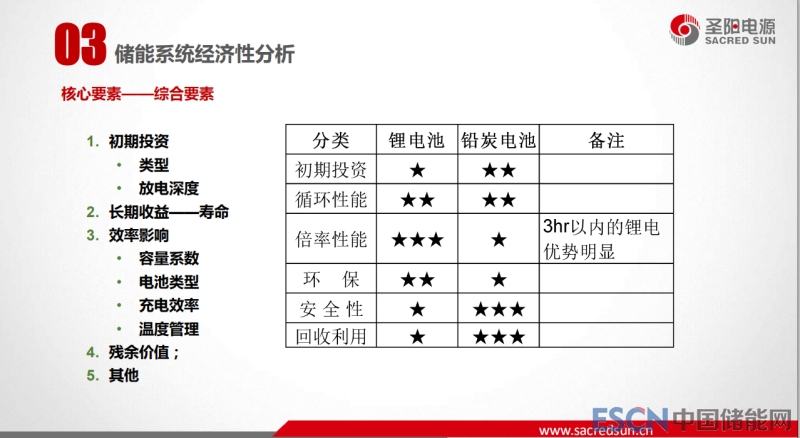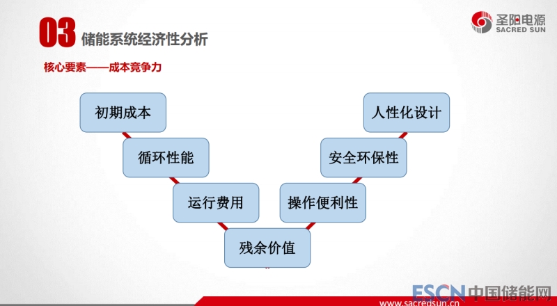 第三部分是儲(chǔ)能系統(tǒng)經(jīng)濟(jì)性分析。第一個(gè)方面是需求導(dǎo)向,包括削峰填谷,還有一個(gè)趨勢(shì)備用電源的儲(chǔ)能化應(yīng)用,現(xiàn)在是一個(gè)很大的趨勢(shì),包括數(shù)據(jù)中心備用電源的儲(chǔ)能化運(yùn)用,從原來的單一備電來看成本相對(duì)高,單一儲(chǔ)能來看本也是比較高,但是兩者結(jié)合起來,既具備備用的功能,同時(shí)來儲(chǔ)能的收益。第二個(gè)方面從國家政策導(dǎo)向和發(fā)展趨勢(shì)方面,這兩個(gè)方面一個(gè)是模式創(chuàng)新,一個(gè)是技術(shù)創(chuàng)新。我認(rèn)為模式創(chuàng)新是錦上添花,任何一個(gè)行業(yè)的發(fā)展快慢和商業(yè)模式有關(guān)系,但是一個(gè)行業(yè)能否持續(xù)穩(wěn)定健康的發(fā)展,技術(shù)的創(chuàng)新,技術(shù)的基本保證是最基礎(chǔ)的,要不然就是曇花一現(xiàn)。