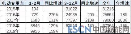 2019年1-2月的新能源專用車的銷量9955臺,同比增速159%,走勢很強(qiáng)。雖然2018年新能源專用車市場走勢總體6.7萬臺增速-15%的表現(xiàn)較弱,這也是暫時的影響。