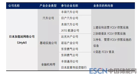 日本主要通過政府高額補助和企業(yè)聯(lián)合開發(fā)兩種方式來加快加氫站戰(zhàn)略布局。其中,在企業(yè)聯(lián)合開發(fā)方面,2018年3月6日,豐田汽車公司、日產(chǎn)汽車公司共11家公司,成立了旨在體系化建設氫燃料電池車(下稱“FCEV”)加氫站的“日本加氫站網(wǎng)絡公司”(JHyM)。在氫能源基本戰(zhàn)略中被定位為“加氫建設的推動者”。