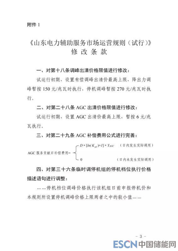 附通知及調(diào)整后的山東電力輔助服務(wù)市場運(yùn)營規(guī)則: