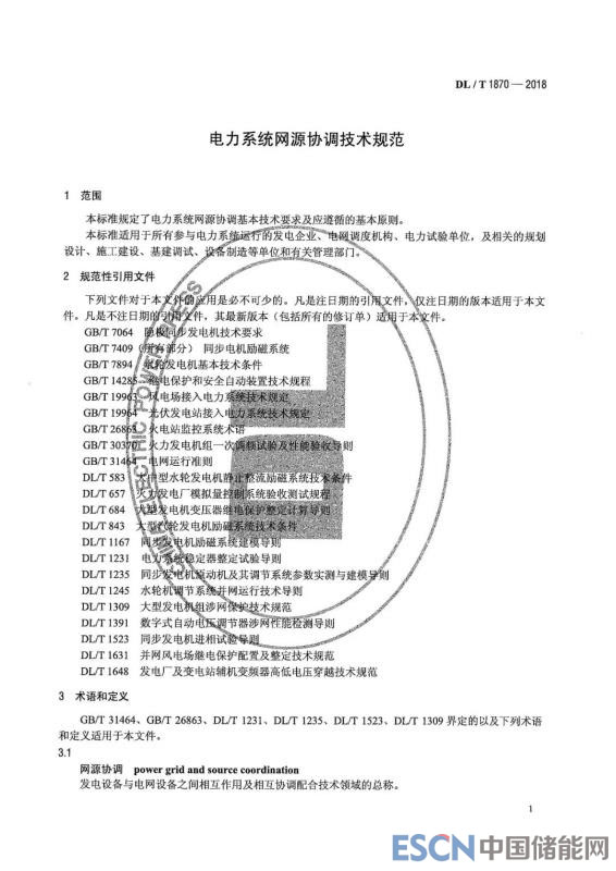 電力系統(tǒng)網(wǎng)源協(xié)調(diào)技術(shù)規(guī)范標(biāo)準(zhǔn)發(fā)布
