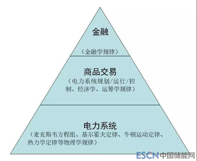 市場元素的加入使得原本就已十分復(fù)雜的電力系統(tǒng)變得更加復(fù)雜,各種關(guān)系交織在一起,難以厘清,常常引起概念上的混淆。但總體來說,電力市場/電力系統(tǒng)的問題仍可分為電力系統(tǒng)物理層、商品交易層和金融交易層3個層次,各自服從不同的規(guī)律,但又互相關(guān)聯(lián),如圖2所示。在3個不同層次中,“電能”的內(nèi)涵是完全不同的,需清晰分辨不同層次的概念和規(guī)律。由于電能在物理上的同質(zhì)化特征,電網(wǎng)的作用像水池,因此從物理電能的角度,實際上是無法分清產(chǎn)銷方的。因此電力市場中交易的并非物理的電能(屬于物理層),而是發(fā)電權(quán)與用電權(quán)(屬于商品交易層),最終通過調(diào)度計劃來實現(xiàn),因此電網(wǎng)調(diào)度也成為整個電力市場的“交通指揮中心”,電力市場交易則完全基于所采用的調(diào)度、控制模型。