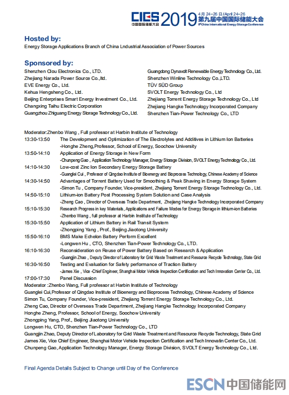 以下是《儲能電池與技術應用專場二》議程內(nèi)容,其他各專場議程組委會將相繼發(fā)布,敬請關注!