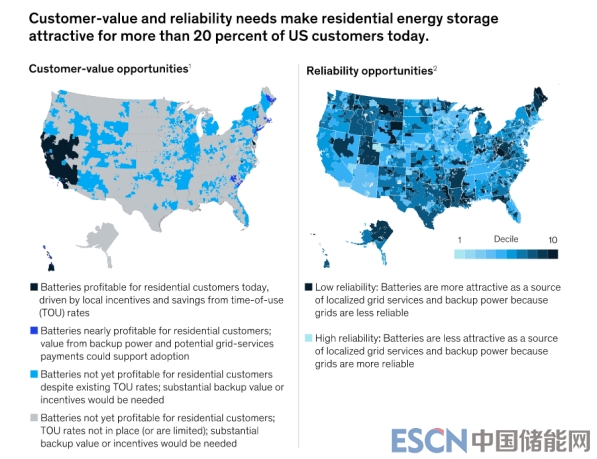 電網(wǎng)上的住宅儲能資源越多,電網(wǎng)整合就越有價值。因此,美國幾個州正在試驗實施住宅儲能的電網(wǎng)整合計劃。馬薩諸塞州和紐約州正在制定“清潔峰值”政策,以促進住宅儲能系統(tǒng)的部署,以滿足峰值需求。從2020年開始,根據(jù)該州建筑節(jié)能標準第24條,加利福尼亞州將要求在該州新建住宅安裝太陽能發(fā)電系統(tǒng),并鼓勵建筑商部署電池儲能系統(tǒng)。