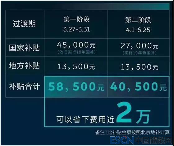 第一階段:將于3月31日截止,購(gòu)買現(xiàn)車或支付大定,可享受國(guó)家補(bǔ)貼4.5萬(wàn)元,以及地方補(bǔ)貼1.35萬(wàn)元,共計(jì)5.85萬(wàn)元。