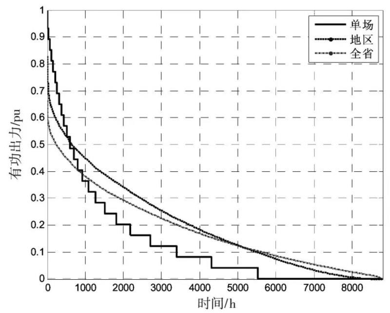 圖:中國(guó)東北地區(qū)某省的單場(chǎng)、地區(qū)、全省風(fēng)電匯聚效應(yīng)曲線對(duì)比