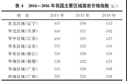 2016年12月各省(區(qū)、市)非居民用天然氣基準門站價格(含增值稅)見表3,2014—2016年我國主要區(qū)域煤炭價格指數(shù)見表4。天然氣和煤炭兩種資源價格有明顯的地域性,主要分為華東和華南、華北、西北地區(qū)。其中華東和華南地區(qū)遠離天然氣主產(chǎn)區(qū),無論是管輸還是LNG運輸,均存在成本高的問題,目前售價在2.5元/m3以上,而煤炭限制少,可依托海運優(yōu)勢實施進口,售價與國內(nèi)運輸價環(huán)渤海灣指數(shù)基本相同。華北地區(qū)天然氣靠近資源產(chǎn)地和國家主進口管道,資源可獲得性較好,氣價相對較低,目前售價2元/m3左右。煤炭雖也靠近產(chǎn)地,但基本以鐵路和公路運輸為主,物流費用較高,售價與國家環(huán)渤海灣指數(shù)相同。同時,京津冀地區(qū)環(huán)保壓力大,壓縮煤炭數(shù)量指標高。西北地區(qū)位于天然氣和煤炭主產(chǎn)地,售價較低。