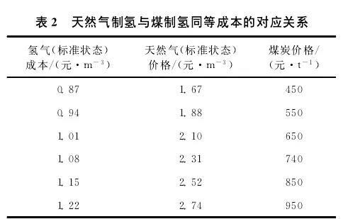 4.4天然氣制氫與煤制氫同等成本的對應(yīng)關(guān)系