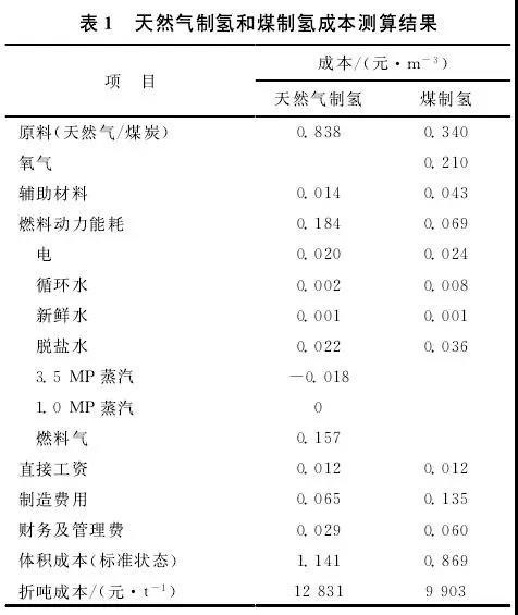天然氣制氫和煤制氫成本測算結(jié)果見表1。