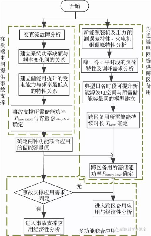 本文探索了儲能提升特高壓輸電線輸送容量與輸送電量中新能源發(fā)電占比的兩種功能聯(lián)合應(yīng)用對儲能容量的需求與經(jīng)濟可行性,在提升電網(wǎng)緊缺靈活調(diào)節(jié)源利用率的同時將新能源發(fā)電的消納能力提升到最大。兩種功能聯(lián)合應(yīng)用中合理的容量需求決定應(yīng)用的可靠性實現(xiàn)及收益程度,影響著投資決策分析,針對這方面的研究也尚屬空白。因此,本文在探索單應(yīng)用功能中儲能容量需求與可提升新能源消納能力間特性關(guān)系的數(shù)學(xué)模型基礎(chǔ)上,結(jié)合兩種應(yīng)用功能的出現(xiàn)時序與緊急程度,提出多應(yīng)用功能目標(biāo)下的容量配置思路。